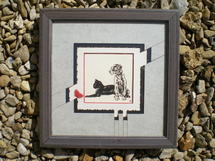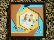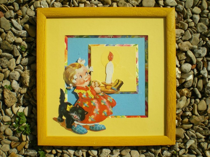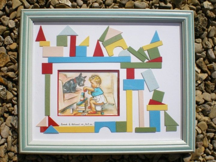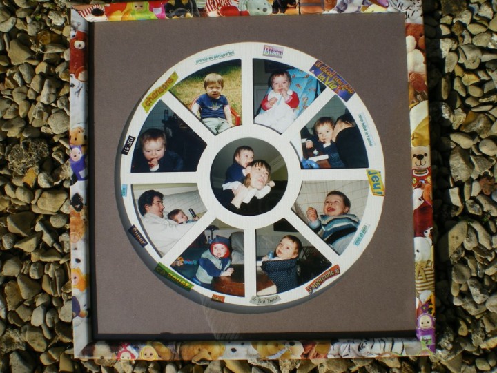 - images, documents, parfois objets ; anciens, précieux, sentimentaux ou amusants ; sublimés par le jeu des couleurs et des formes qui l’entourent.