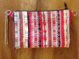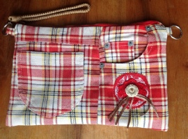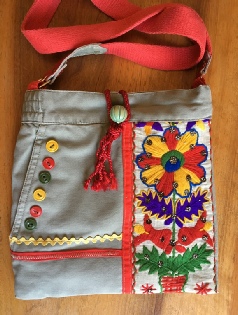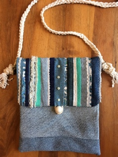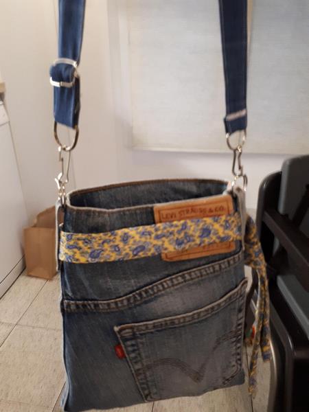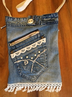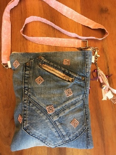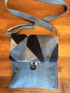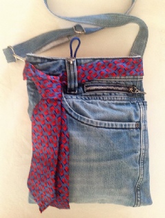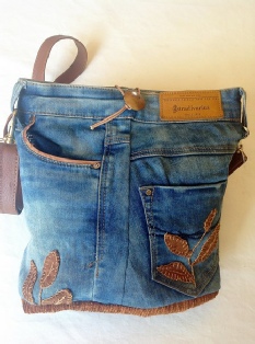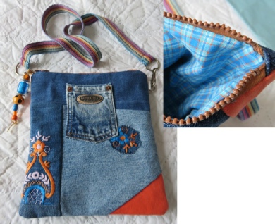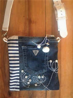 Vêtements en jean, broderies et accessoires récupérés retrouvent une nouvelle jeunesse en sacs et vide poches, tous en modèle unique, entre 15 € et 45 €